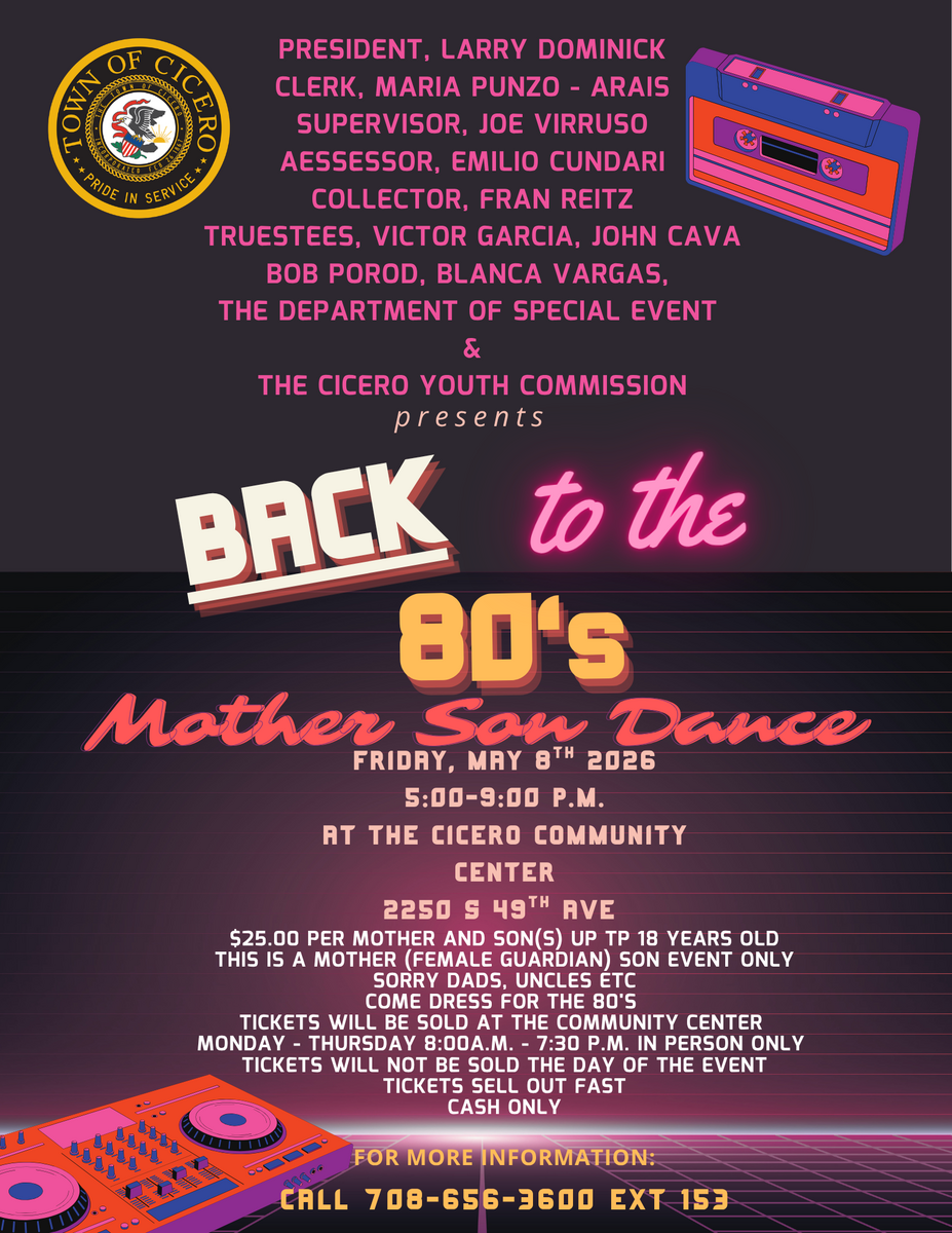 🎶 BACK TO THE 80'S: REGISTER NOW FOR CICERO MOTHER & SON DANCE! 💃Get ready to rewind time, Cicero District 99! Break out the neon, tease up the hair, and grab your favorite dancing partner... b...